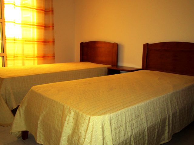 Quarto 1 com cama de casal. Quarto 2 com duas camas individuais. |