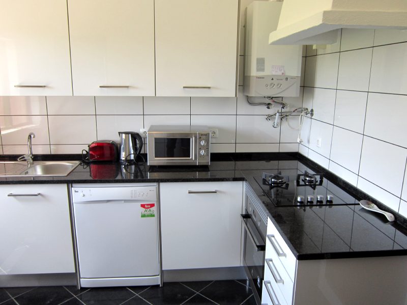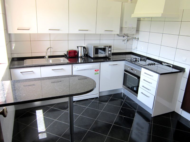 | COZINHA EQUIPADA | 1 | Fogão com placa vitro cerâmica com 2 bicos e 2 Bicos a Gás, e forno eletrico, exaustor, Micro-ondas, Frigorífico Combinado com com Congelador de 3 gavetas, Máquina de Café de cápsulas, Máquina de lavar a loiça, Máquina de lavar roupa, Torradeira, Varinha Mágica, jarro elétrico, espremedor de laranjas, pratos, copos, talheres, taxos, panelas e outros utensílios de cozinha variados, mesa retangular, oval com 6 cadeiras, panos e toalhas de cozinha. Água quente por painel solar. |