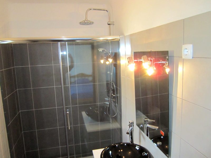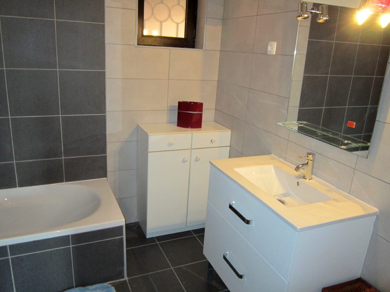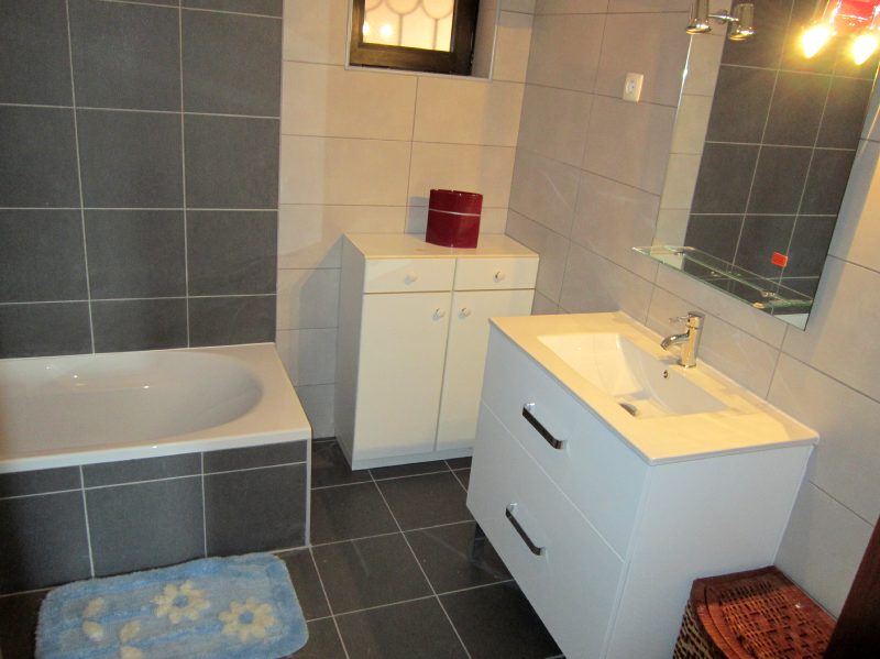 Casa de banho 1, wc, bidê e lavatório, polibã Situada no 1º piso Casa de banho 2, wc, bidê, lavatório, Banheira com chuveiro situada R/C. |