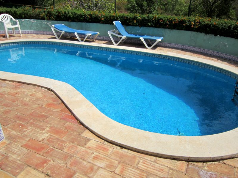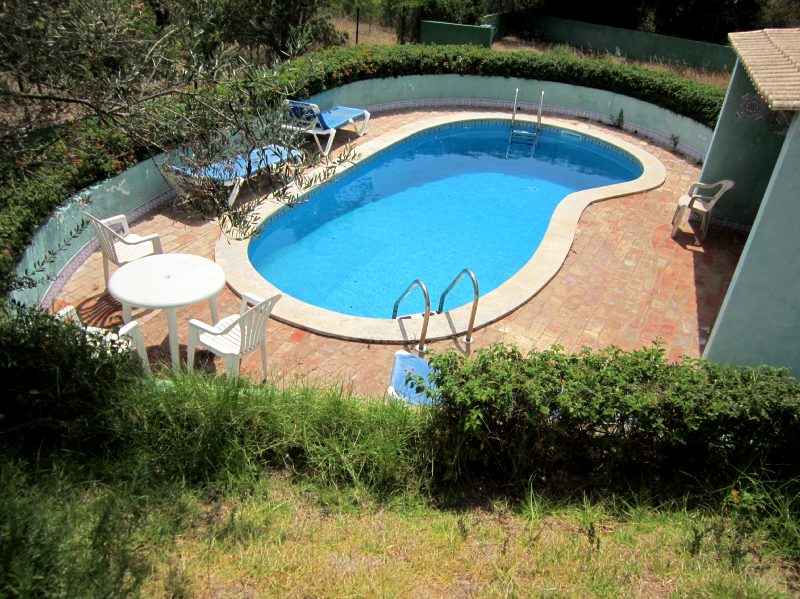 | PISCINA | 1 | Exterior, privada, para adultos e crianças, com profundidade inclinada, enterrada no solo em fibra, de forma rectangular tipo feijão com boa exposição solar, Dimensões: Cumprimento.5 metros x largura 3 metros x Prof. Minima: 0,70 mtr- Máxima:1,85 metros. Pátio em mosaico circundante. |